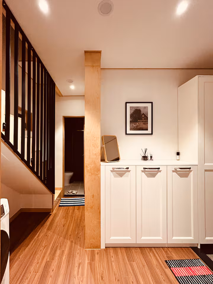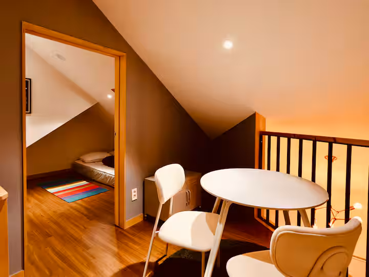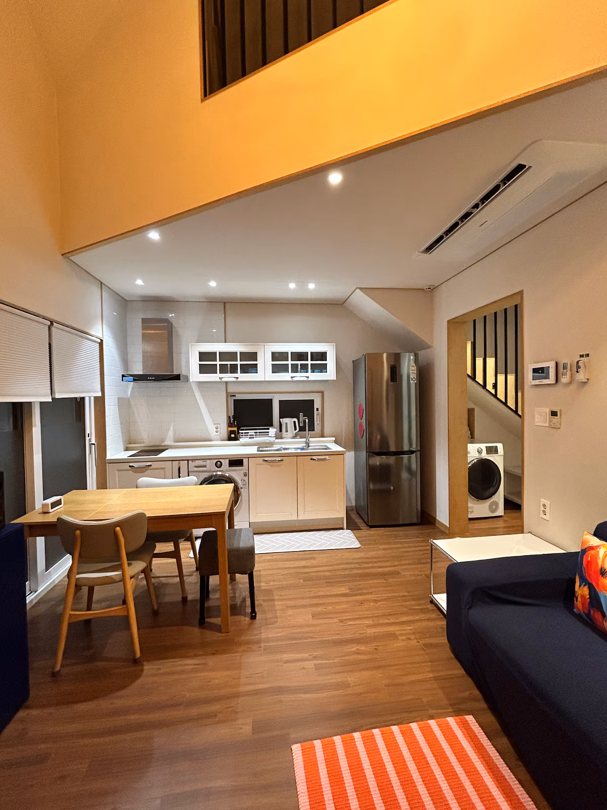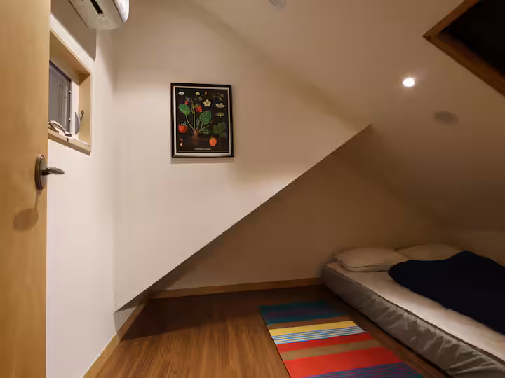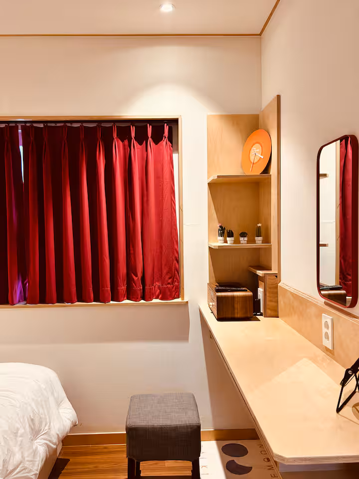퀸사이즈 침대 · 에어컨 · 옷걸이 · 의류 보관 공간 · 침구